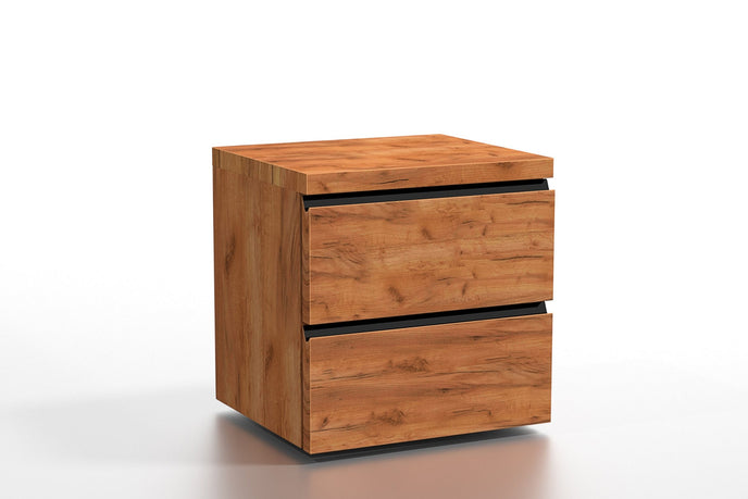 Der Nachttisch GIANIS vereint edles Design mit durchdachter Funktionalität. Gefertigt aus massivem Holz und mit zwei praktischen Soft-Close-Schubladen ausgestattet, ist er der ideale Begleiter für ein harmonisches Schlafzimmer.